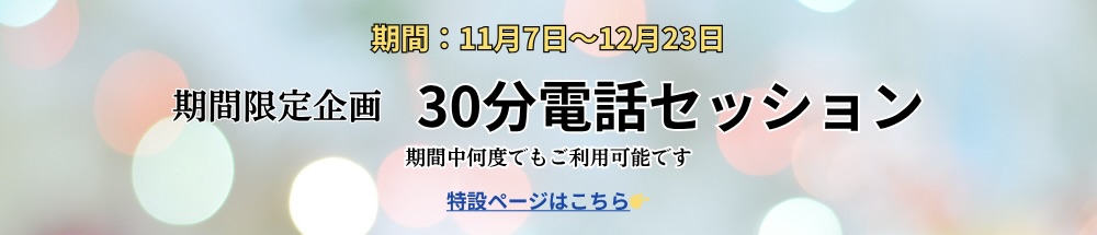 今回は、公式LINE友だち登録者様と、期間中この企画をご覧になった方限定で、特別企画「30分電話セッション/3000円」をご紹介します。
